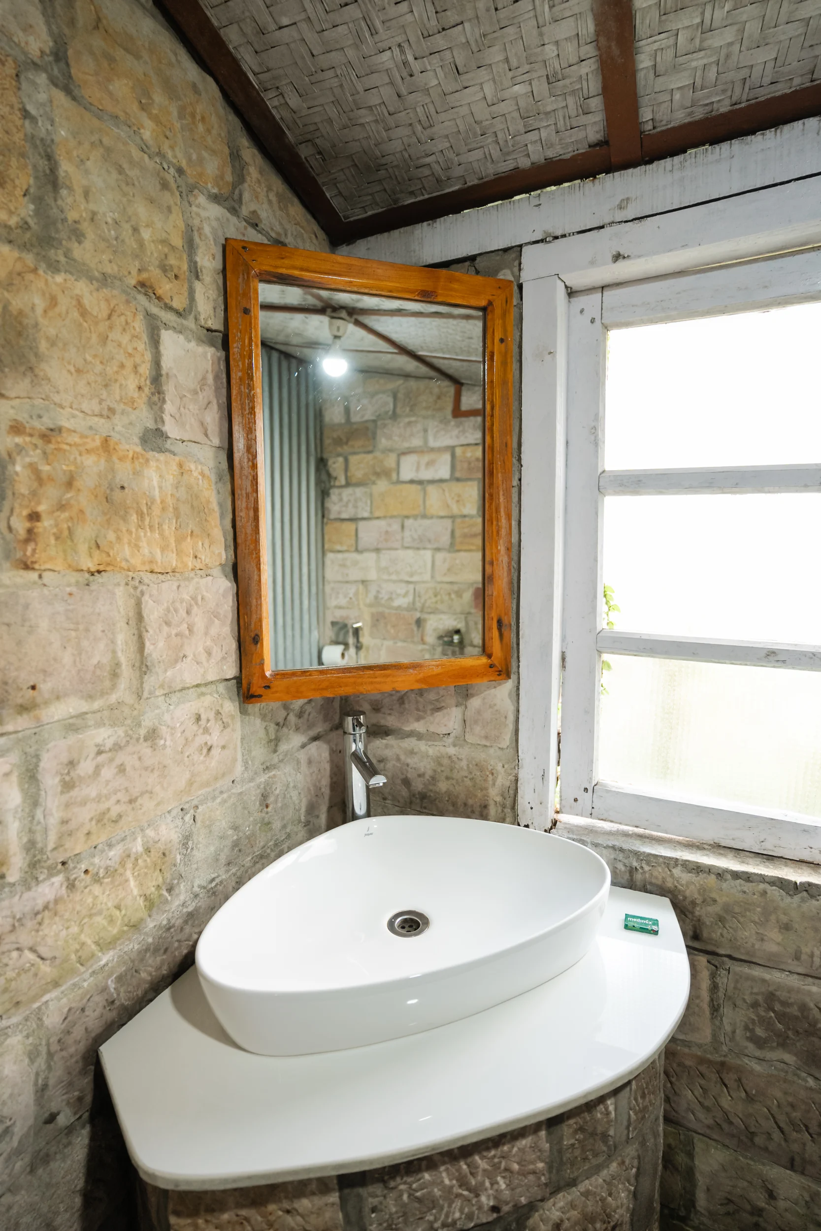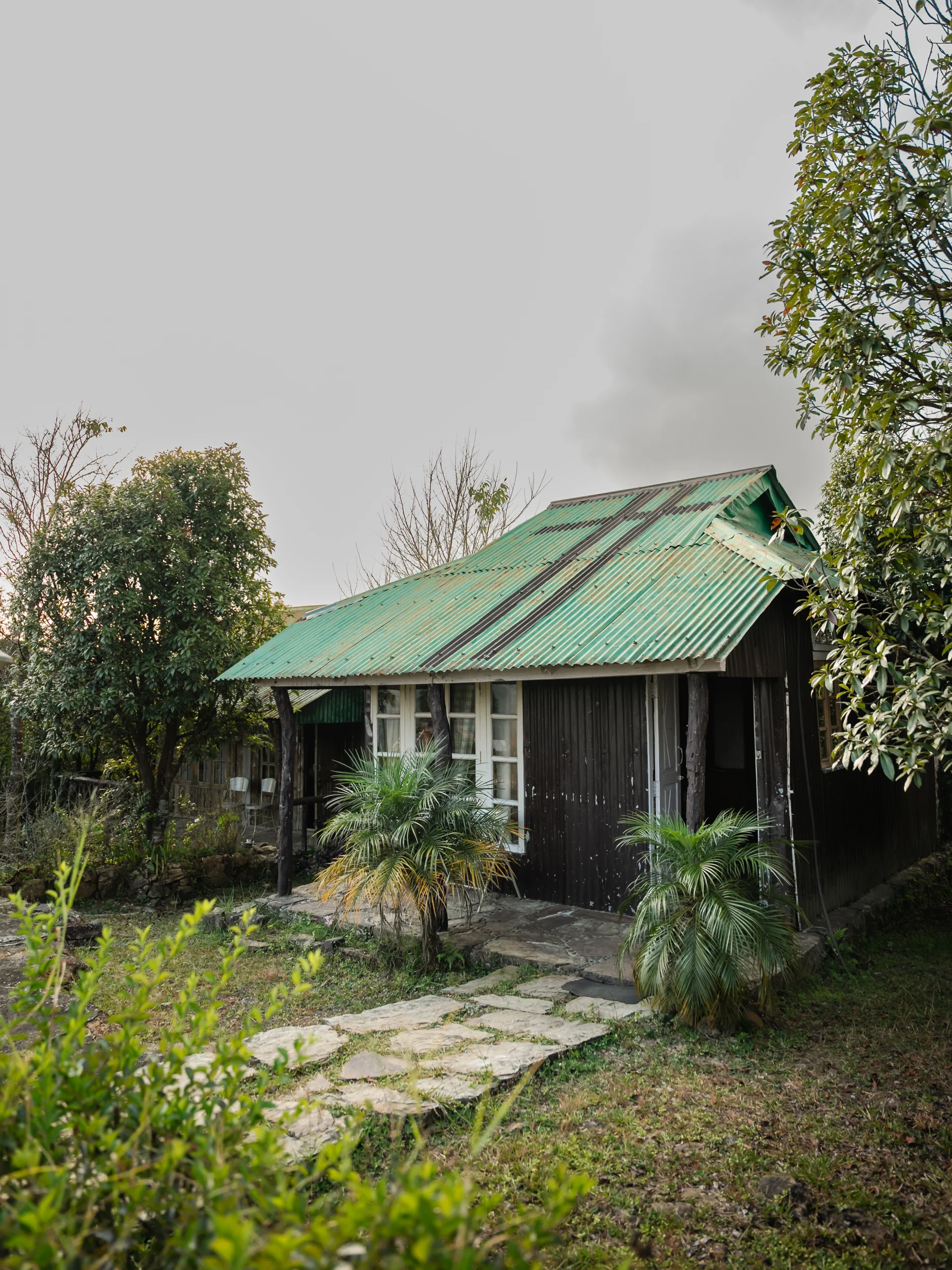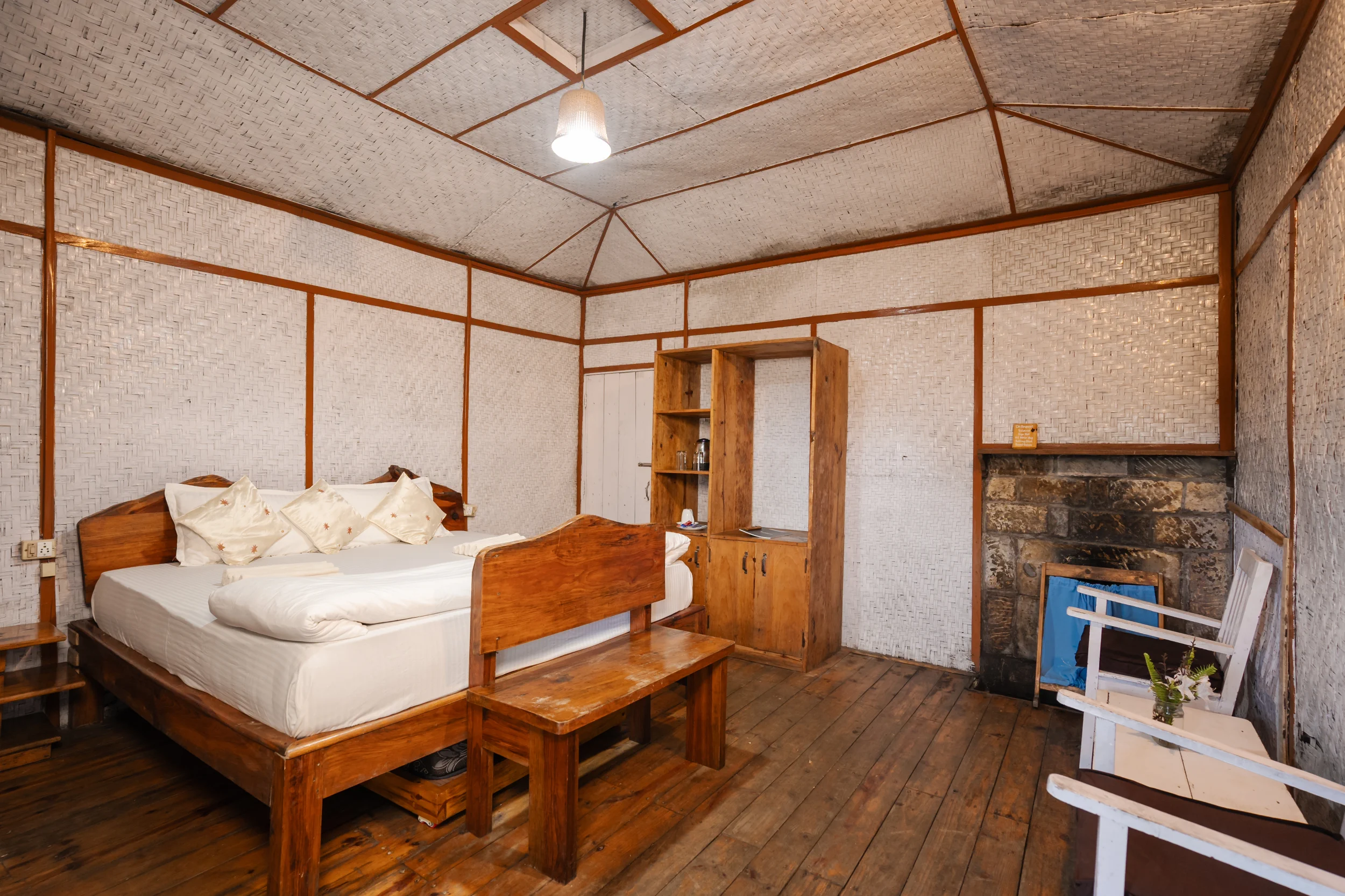 The dainty tin cottage Niamtra takes inspiration from the ethnic Assamese homes. The sloping tin roofs can ensure you enjoy the sweet melody caused by the famous rains of Sohra. It is a cozy cottage that comes with a queen bed, attached bathroom, and a small fireplace, making it ideal for couples who can indulge in quality time. The verandah with the cottage ensures you can enjoy the best of nature!