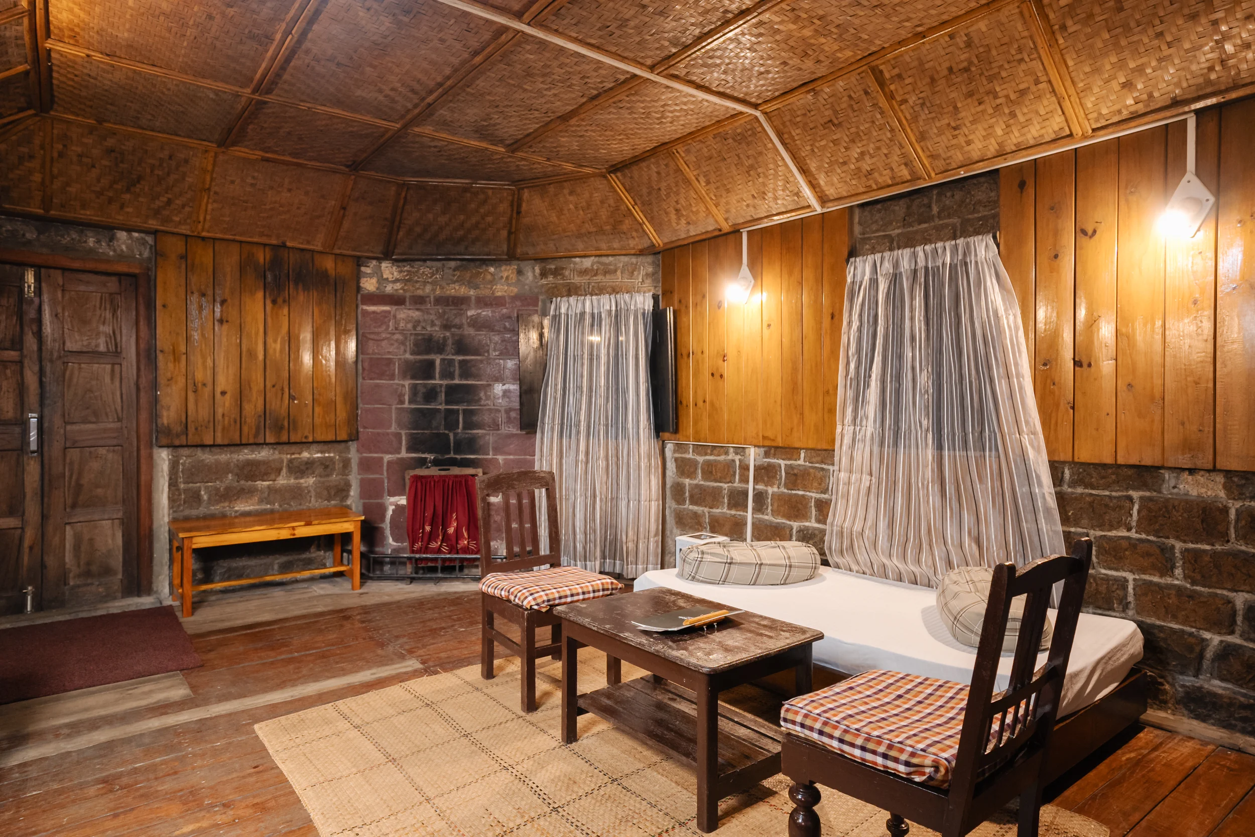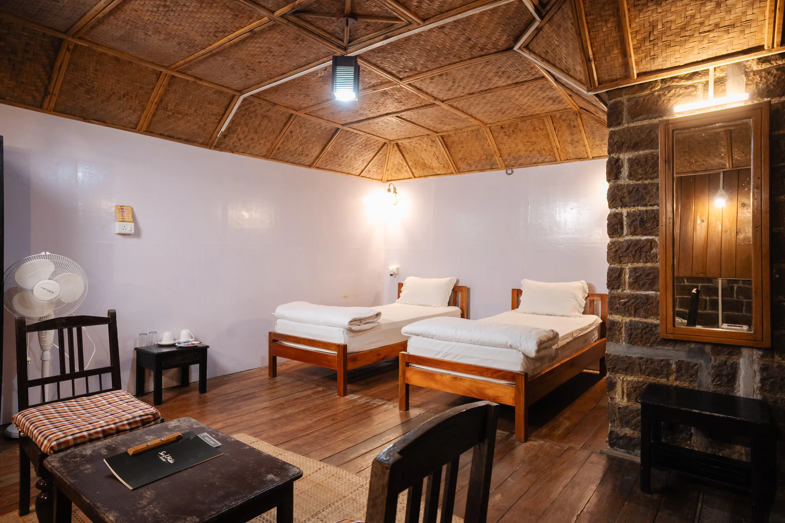 Unwind from the busy life with the comfort and charm of our room Myngnor. With two comfortable single beds, a well-equipped attached bathroom, and a traditional rustic fireplace, it allows you to enjoy the privacy of four walls. Dipped in old-world charm and simplistic decor, the room can house two guests. The room is a part of a structure that comprises four rooms in total, making it ideal for groups and families.